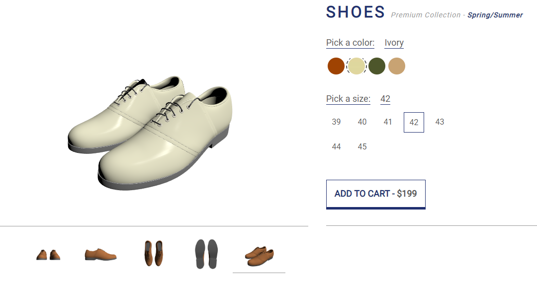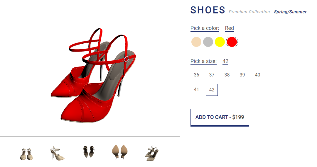 - Customers can select any of the thumbnails of the product which immediately updates the viewpoint.